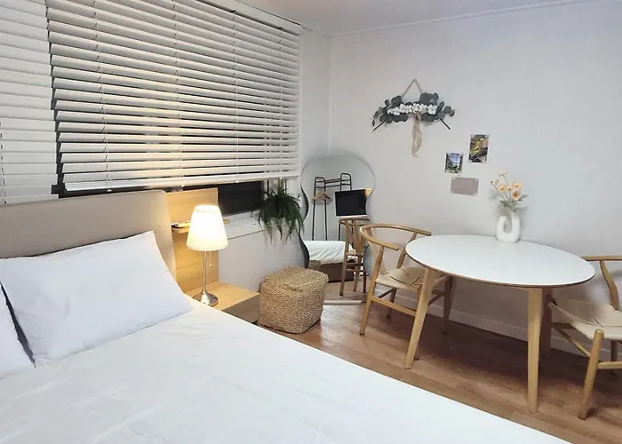 この18m²のアパートから景福宮から4.6キロメートルで、金大中図書館まではから歩いてたった5分です。